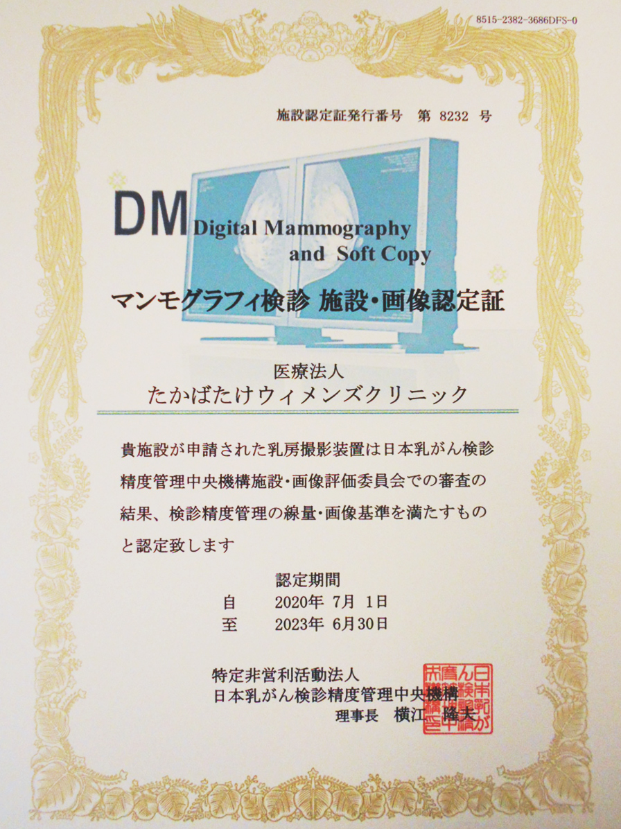 当院は「マンモグラフィ検診 施設・画像認定」施設です。